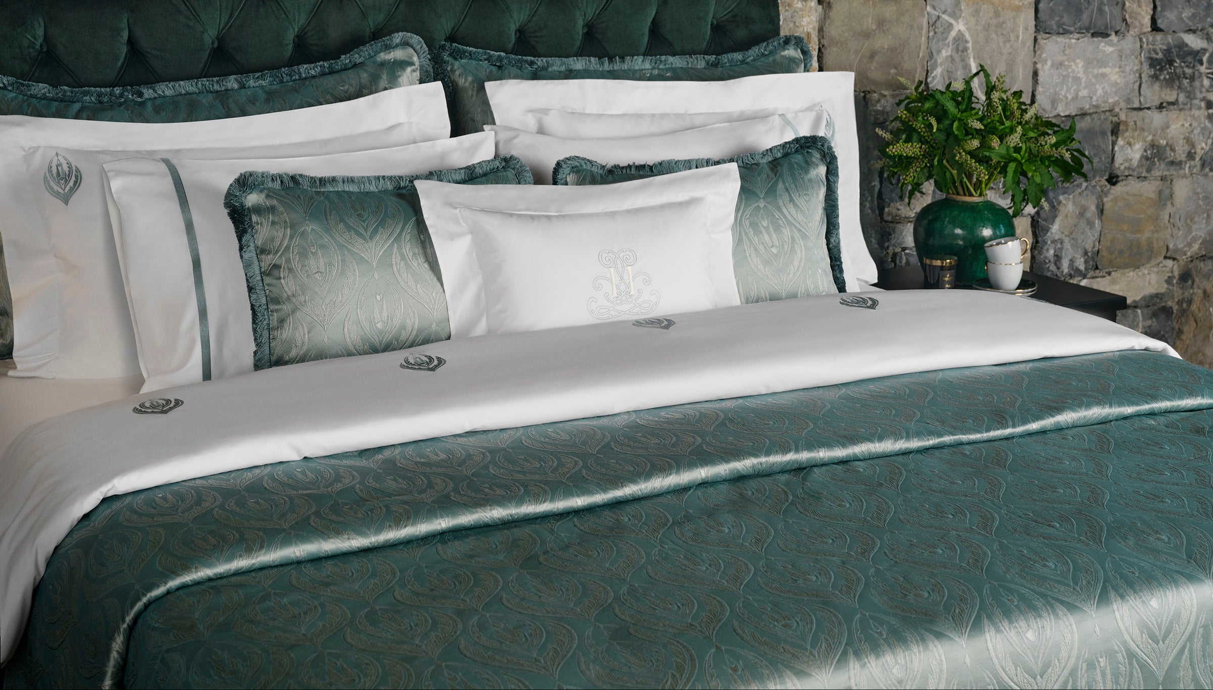 "One of our favorite bedding brands is Haremlique, not only for the super chic designs, but because the quality is of the highest level from the thread count to the handle."
