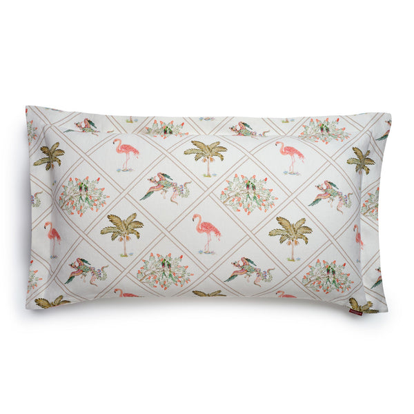 This decorative cushion features a vibrant design inspired by a surreal island, with the legendary Phoenix at its center symbolizing rebirth. Graceful flamingos, elegant palm trees and intricate plant motifs come together to evoke the island’s captivating beauty.%100 linen. Made in Turkey.