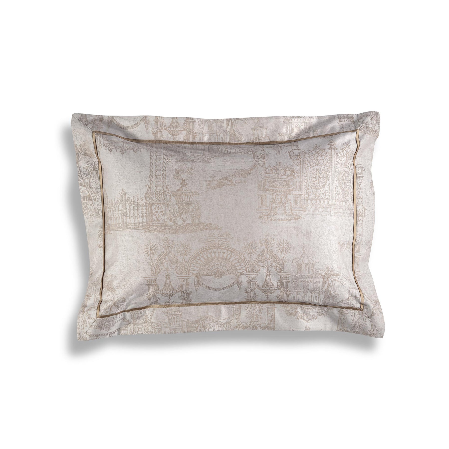 An ideal piece for an opulent look, this cushion cover is prepared with our limited edition Gates of Paradise fabric, depicting palace gardens, monumental buildings and natural beauties with the toile de jouy technique. 100% cotton. Made in Turkey.