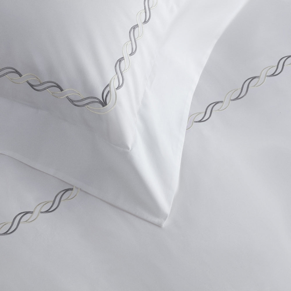 Our collection features a refined selection of duvet cover sets crafted from high-quality percale and sateen, adorned with elegant embroidery in a variety of styles. Each piece is thoughtfully designed and meticulously made, blending traditional elements with a contemporary aesthetic. Select jacquard options bring an added layer of texture and richness to the assortment.