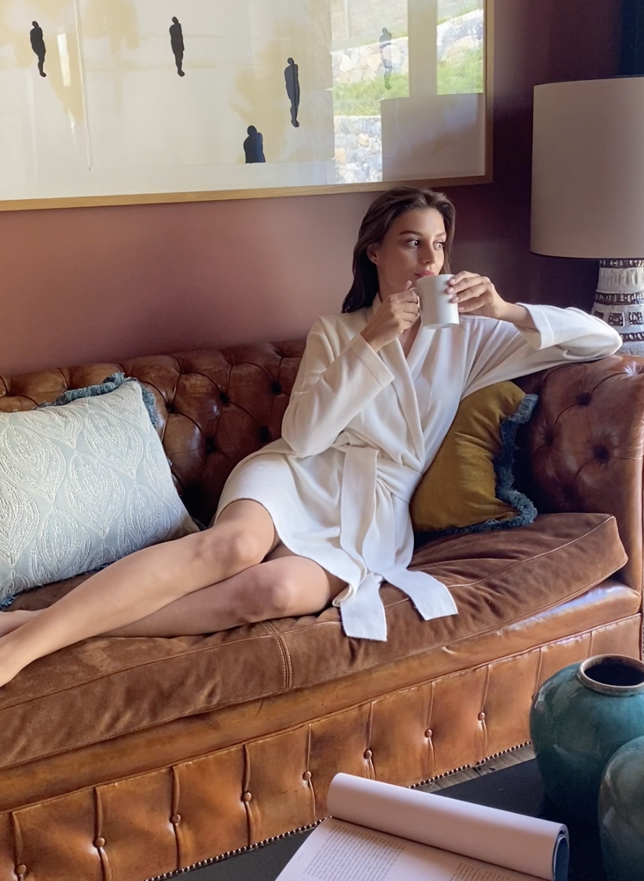 Crafted from natural materials such as silk, cashmere, and cotton, our refined loungewear collection blends comfort with understated elegance. Finely tailored robes, home dresses, T-shirts, and tank tops gently embrace the skin while bringing a sense of considered style to every moment spent at home. Completed with soft cashmere slippers and a silk sleep mask, the collection elevates relaxation with thoughtful design.