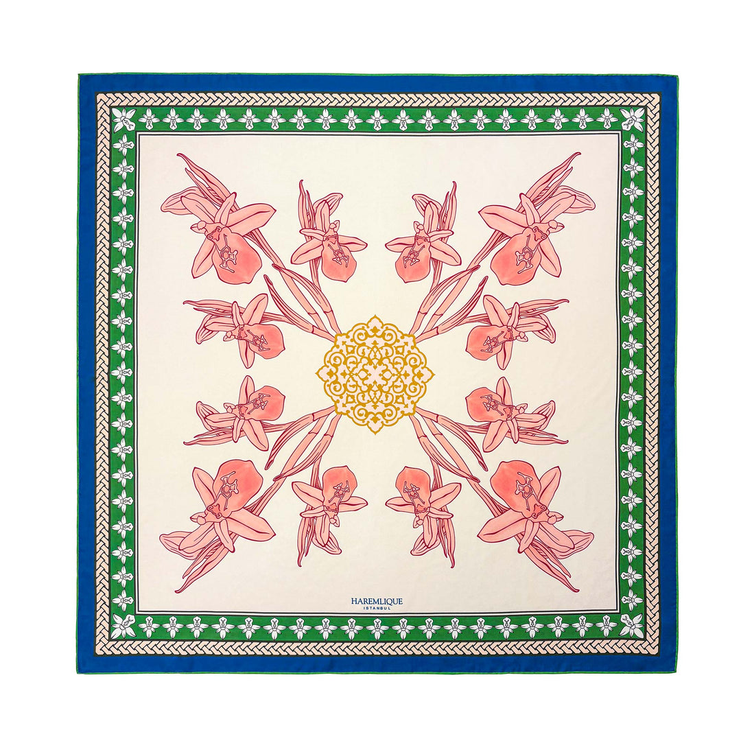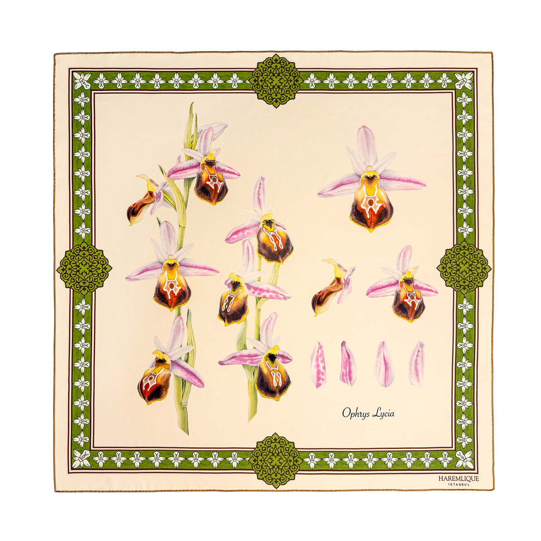 This special scarf is inspired by the Lycian orchid, a rare and delicate species that grows only in certain regions of Turkey. Named after ancient Lycia, which means “Land of Light,” this unique plant is now under threat of extinction. The Mediterranean Conservation Society is working to ensure the survival of the Lycian orchid in nature through seed collection and germination efforts carried out in laboratory conditions.
