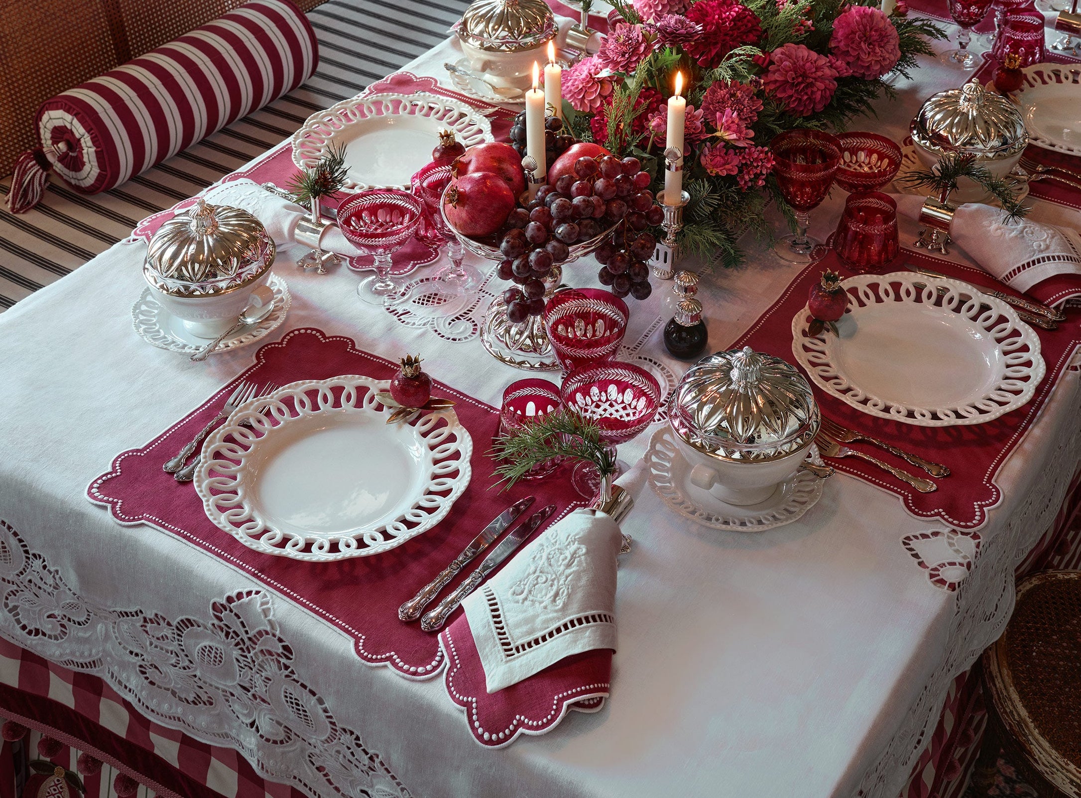 Interpreted with fine craftsmanship, the bed and table textiles are shaped by embroideries, patterns and symbolic motifs inspired by cultural and historical references while home and table accessories that bring both functional and decorative presence to living spaces are completed with natural wood textures and silver plated details.