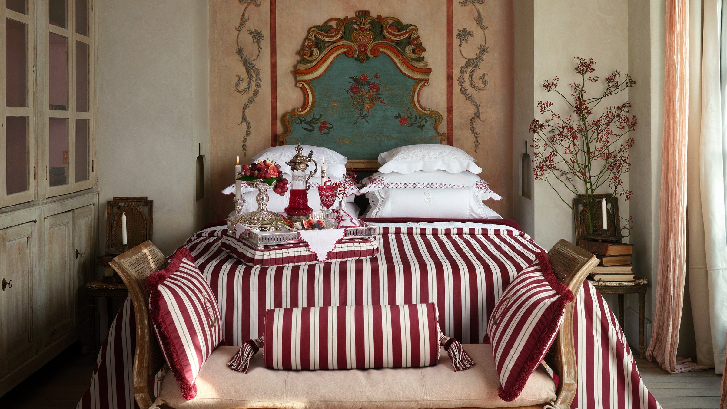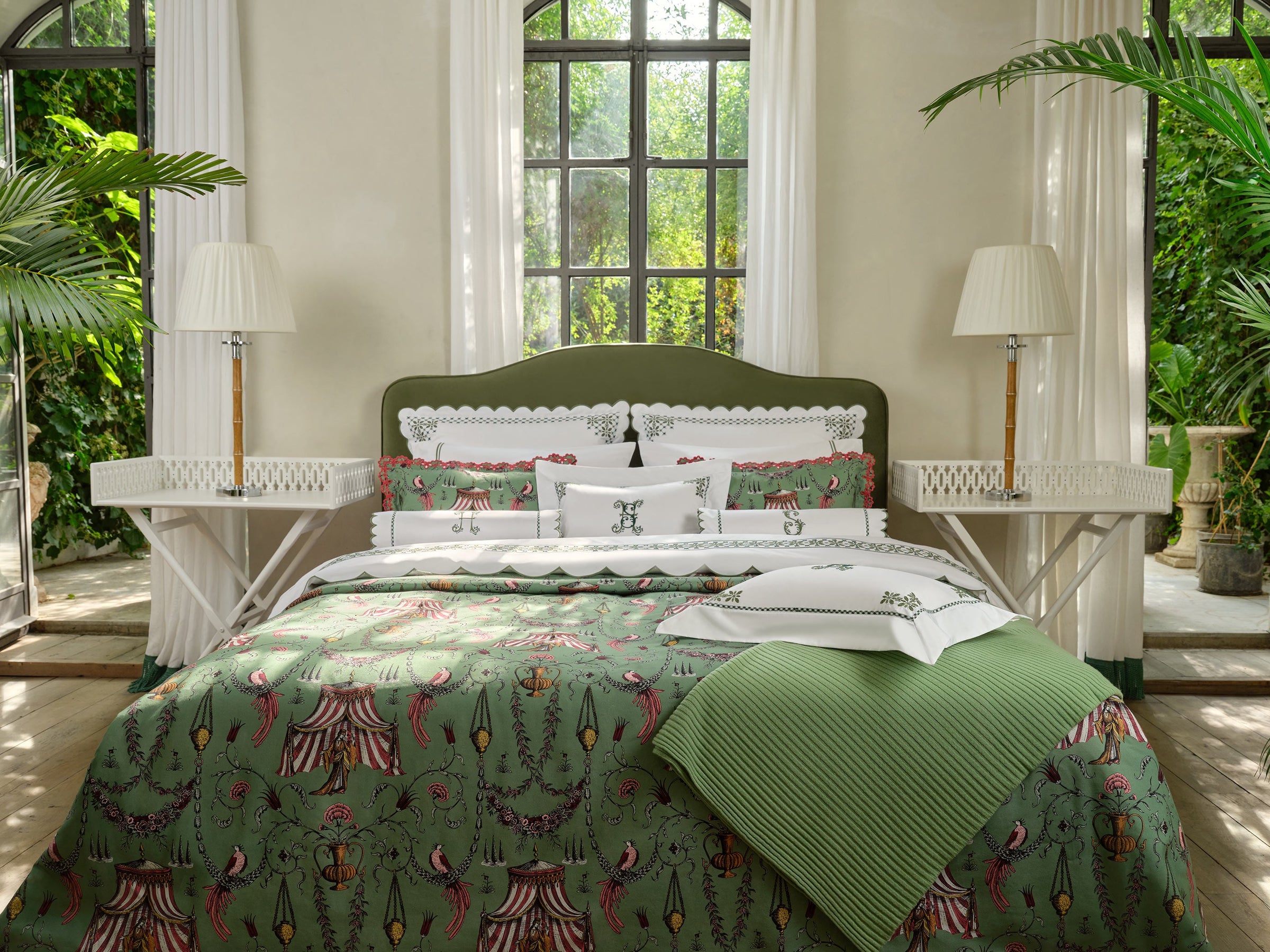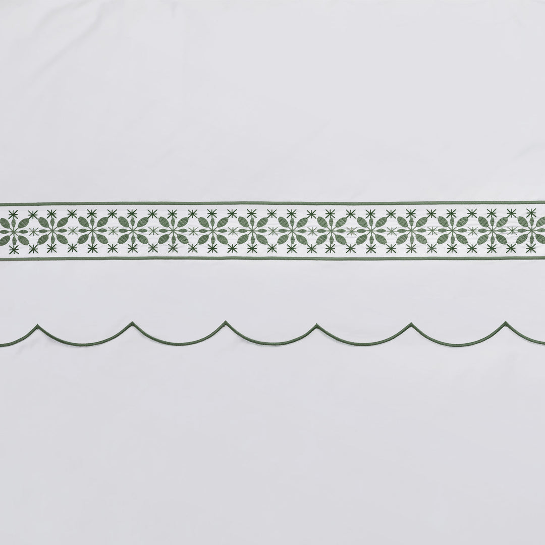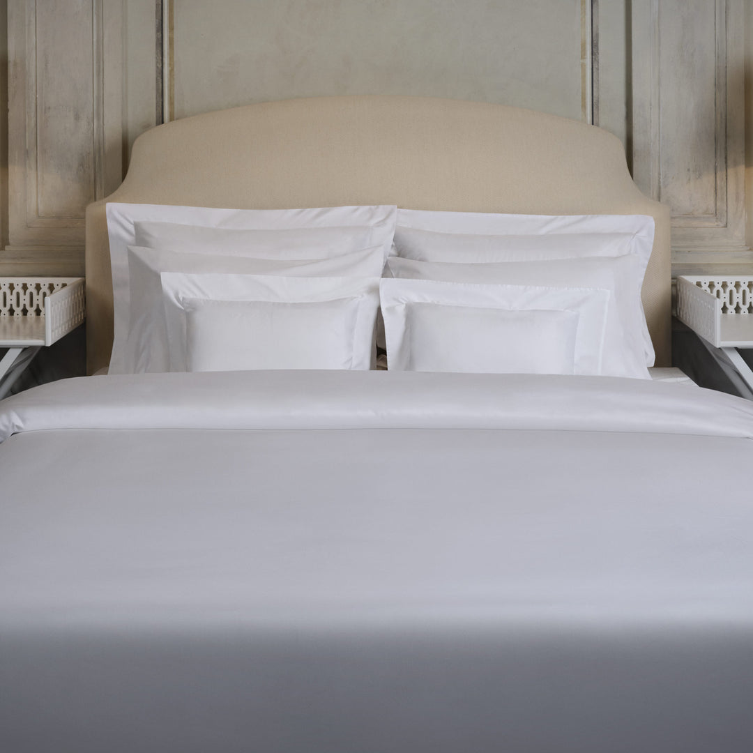 The Seferî Collection's bed linens offer designs inspired by the textures, colors, and symbols of diverse cultures. Fabrics printed with Seferî pattern, modernized tile flowers, and graphic accents of lines add a poetic touch to bedroom decor.